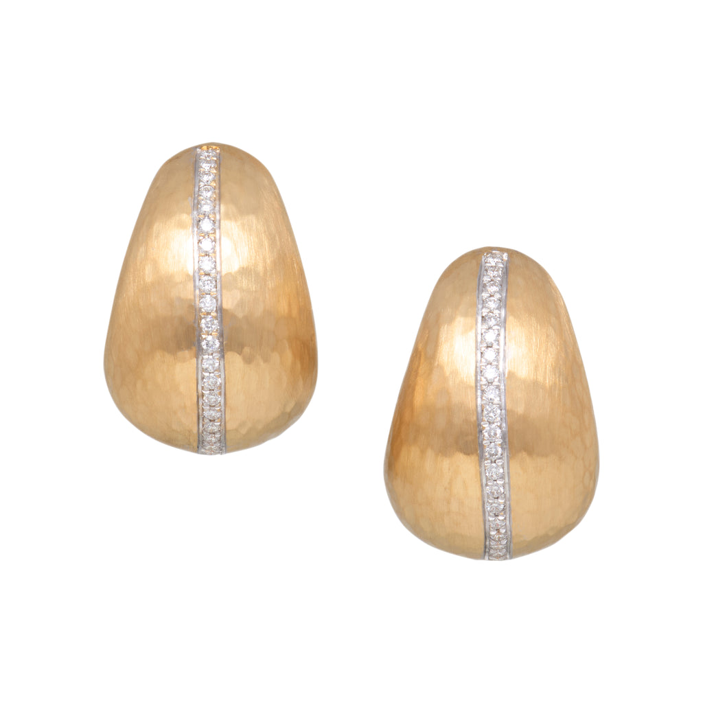 Hammered Tapered Hoops with Diamond Stripe
